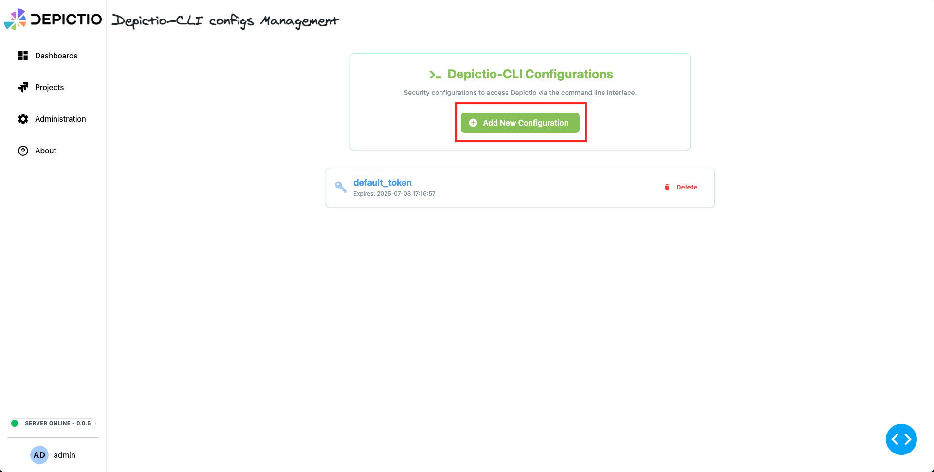 This will generate a YAML file with the necessary configuration to interact with Depictio via the CLI. Save this file in a secure location (e.g., ~/.depictio/CLI.yaml), and ensure it is not publicly accessible. Depending of your installation, the file will look like this: