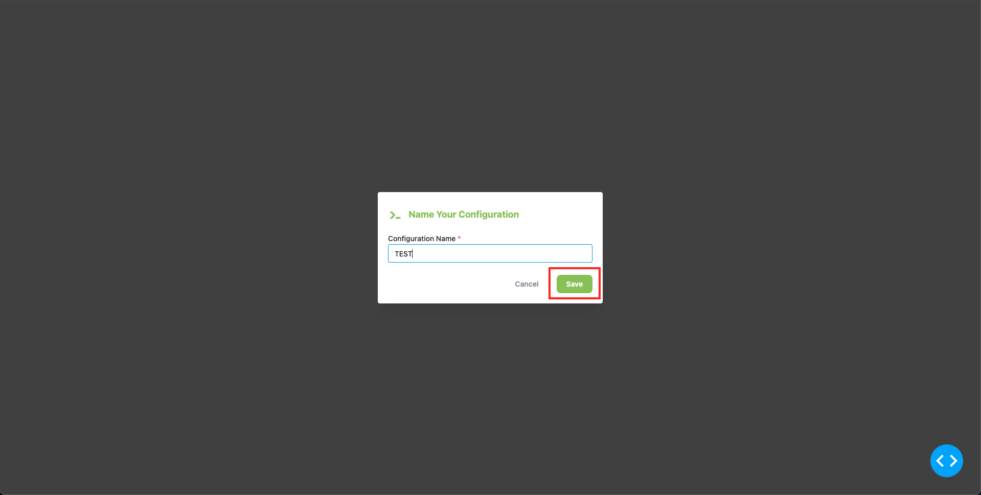 Select a name for your configuration and click on the Save button.
